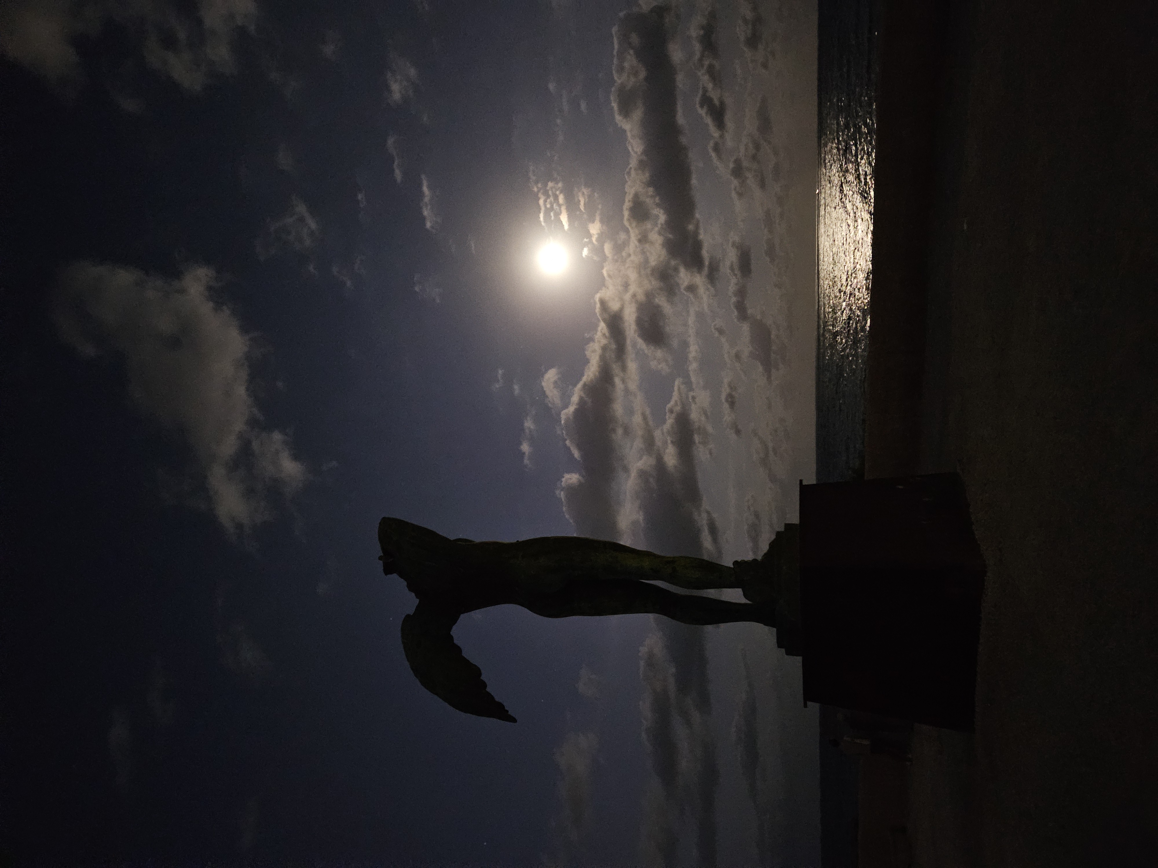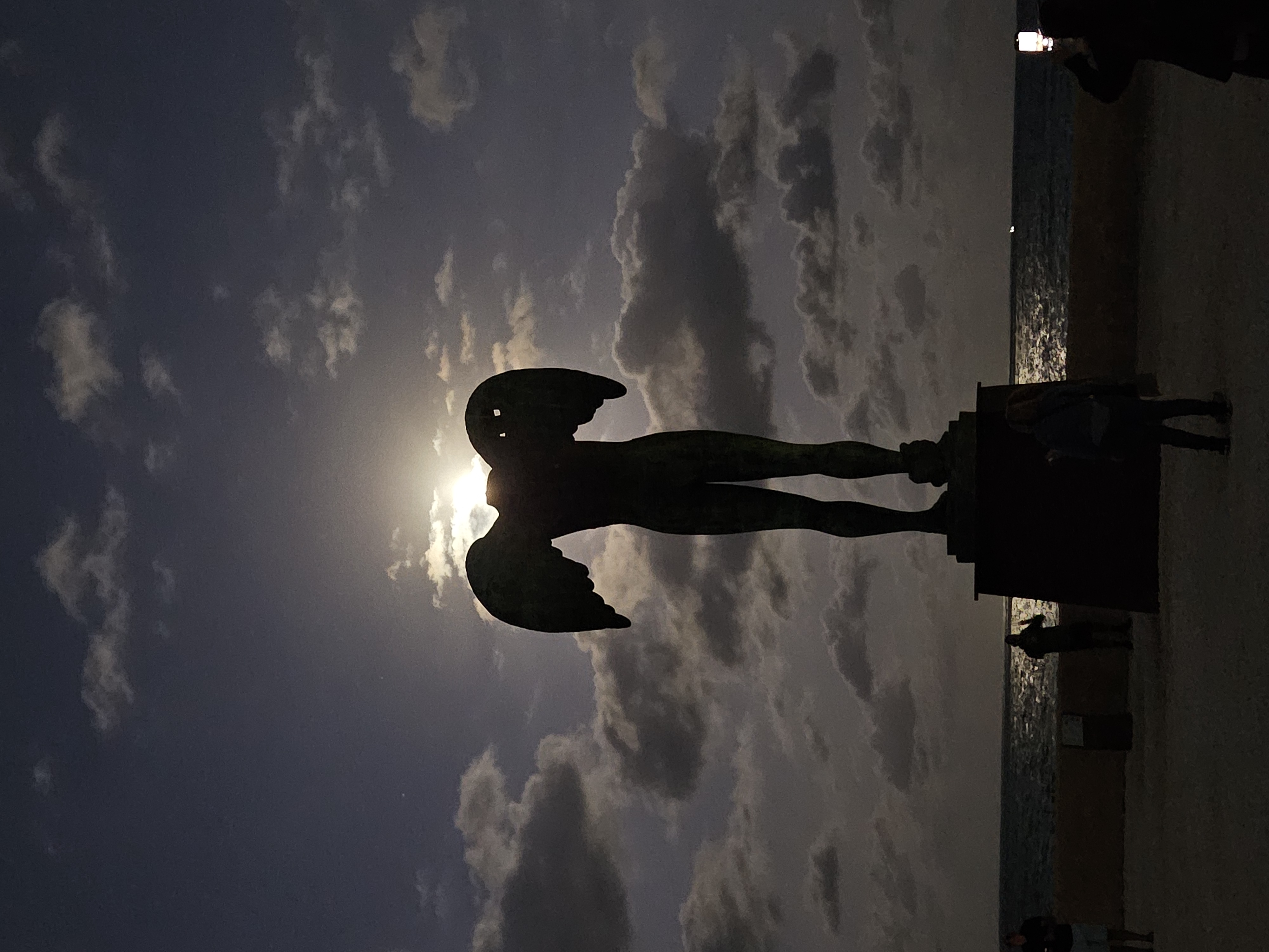 이카루스 상 뒤로 노을이 지면